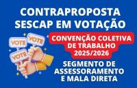 17/10/2025 - Geral FOI REGISTRADA HOJE (17/10/2025) A CCT 2025/2026, assinada entre o SINDPEC e SINAENCO. Confira no site a íntegra da CCT, em caso de descumprimento entre em contato através do e-mail juridico@sindpec.org.br CONTRAPROPOSTA SESCAP 2025/2026 EM VOTAÇÃO